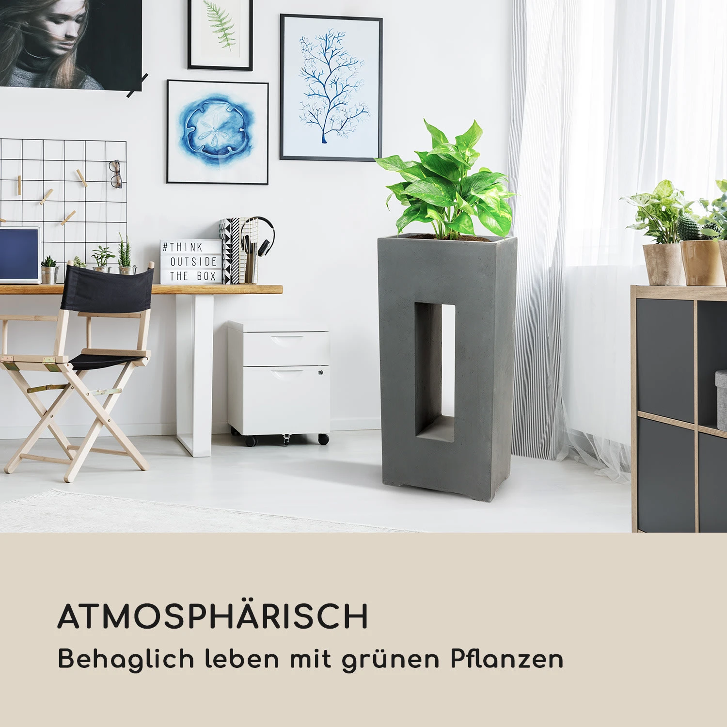 Der Pflanztopf zeigt Pflanzen immer von ihrer besten Seite und bringt sie durch seine schlichte, viereckige Formengebung in japanischer Zen-Optik erst richtig zur Geltung. Dabei ist es egal, ob sie drinnen oder draußen stehen: Das neuartige Materialgemisch aus Fiberglas, Fiberton und Magnesium saugt kein Wasser auf und ist nicht nur extrem solide, sondern auch vollkommen frostsicher. Obwohl der Pflanzkübel wesentlich leichter ist als ein vergleichbarer Topf aus Terrakotta oder Beton, ist er durch das verwendete Material standsicher und massiv.