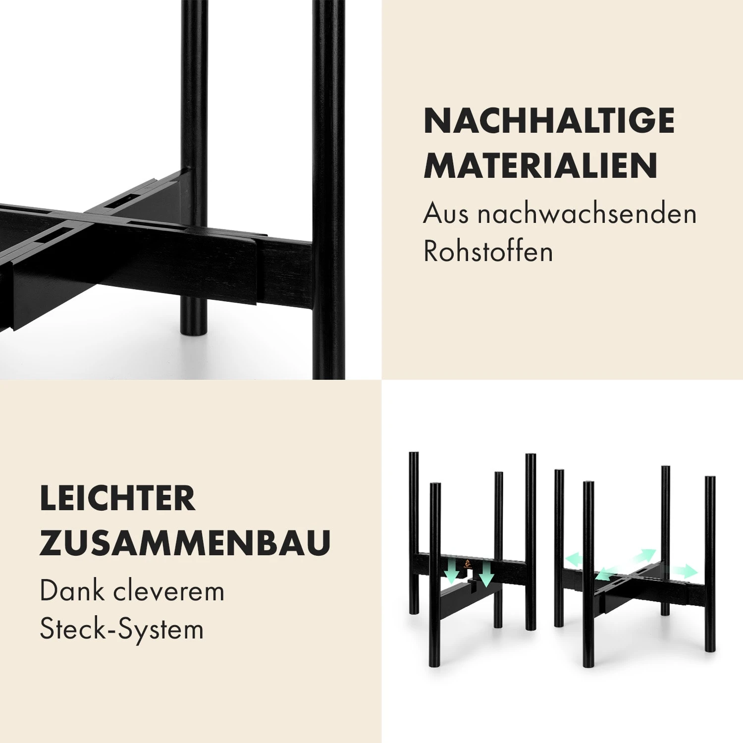 Lass mit dem Deventer Pflanzenhalter von Fox & Fern by blumfeldt mehr Natur bei dir einziehen: Die Blumenständer sind aus nachhaltigem Bambus gefertigt und bringen frische und gute Stimmung in dein Leben. Stelle an deinem erweiterbaren Pflanzendständer einfach den gewünschten Durchmesser deines Blumentopfes zwischen 20,3 und 30,5 cm ein, um deine Lieblingspflanzen bequem darauf zu platzieren. Durch simples Umdrehen des Blumenständers kannst du deine Pflanzenfreunde sogar auf zwei unterschiedlichen Höhen präsentieren. Kombiniere nach Lust und Laune und erschaffe deine private Wohlfühloase bei dir Zuhause. Das praktische Steck-Design ermöglicht zudem eine schnelle und einfache Montage.
