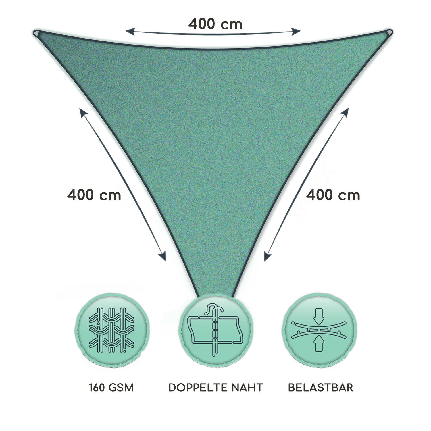 Dank der rostfreien Ringe aus Edelstahl ist die Befestigung sehr unkompliziert. Ziehe einfach die Seile durch die Befestigungsringe, welche du in der Umgebung beliebig anbindest. Für eine dauerhafte Anbringung empfehlen wir dir, anstelle der Seile, Spann- oder Karabinerhaken zu verwenden. Dank des reißfesten und strapazierfähigen Polyester-Materials kannst du das Sonnensegel sehr straff und glatt aufspannen. Zudem ist das Material sehr luftdurchlässig, was dafür sorgt, dass sich unter dem Dach keine Hitze staut. Das Segel hält den Regen ab und ist zudem sehr belastbar, durch festes Material, hochwertige Verarbeitung und doppelte Nähte.