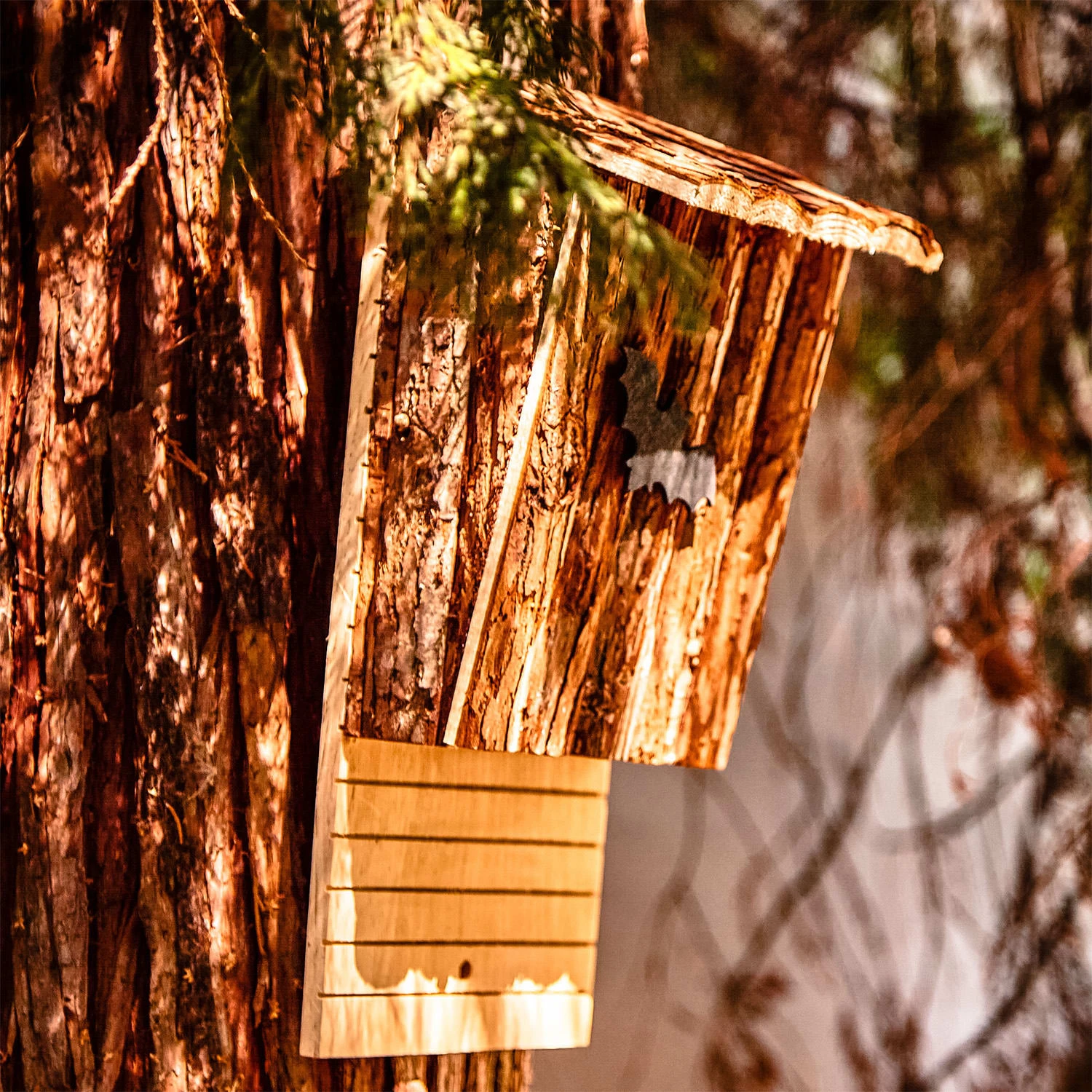 Das blumfeldt Fledermaushotel wurde nachhaltig aus unbehandeltem Tannenholz nach den Empfehlungen des NABU gefertigt. Der Kasten ist rundum geschlossen, sodass er im Inneren schön dunkel und zugluftdicht ist. Für einfaches Anlanden und leichten Zugang sorgen die Rückwand mit Kletter- und Krallrillen sowie ein zwei Zentimeter breiter Bodenspalt, der gleichzeitig Raubtieren den Zutritt verwehrt. Abends kannst du allein oder mit deinen Kindern die kleinen Flattermänner und -frauen beim Ausschwärmen beobachten. Immer mit dem guten Gefühl, dass du den bedrohten Tieren einen tollen Unterschlupf geschaffen und etwas zur Arterhaltung beigetragen hast.