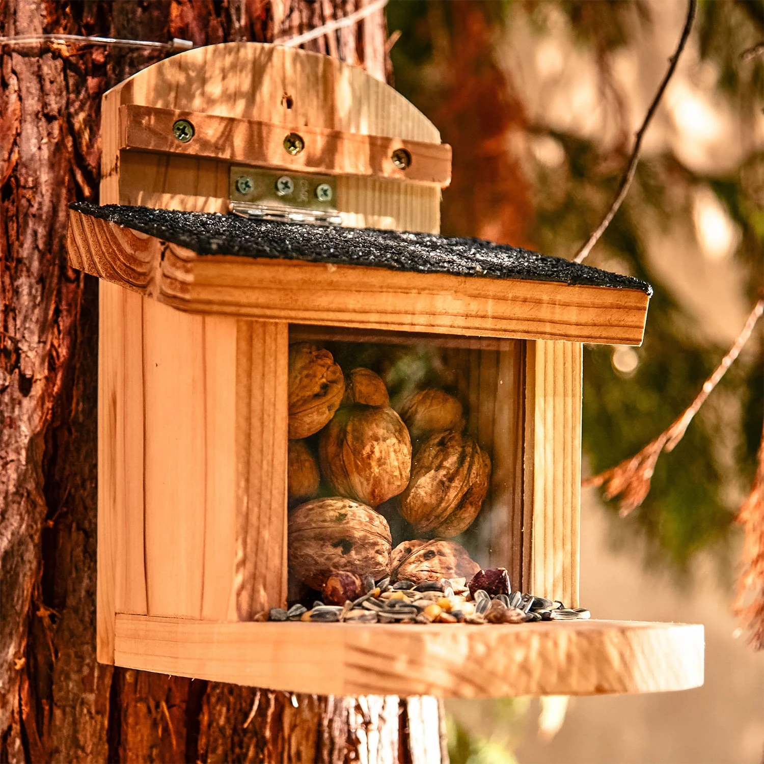 Nagetierfreunde aufgepasst: Mit dem blumfeldt Futterhaus für Eichhörnchen bietet ihr nicht nur den pelzigen Tieren eine praktische Futterstelle, sondern auch euch die Möglichkeit die possierlichen kleinen Eichkätzchen ungestört zu beobachten.