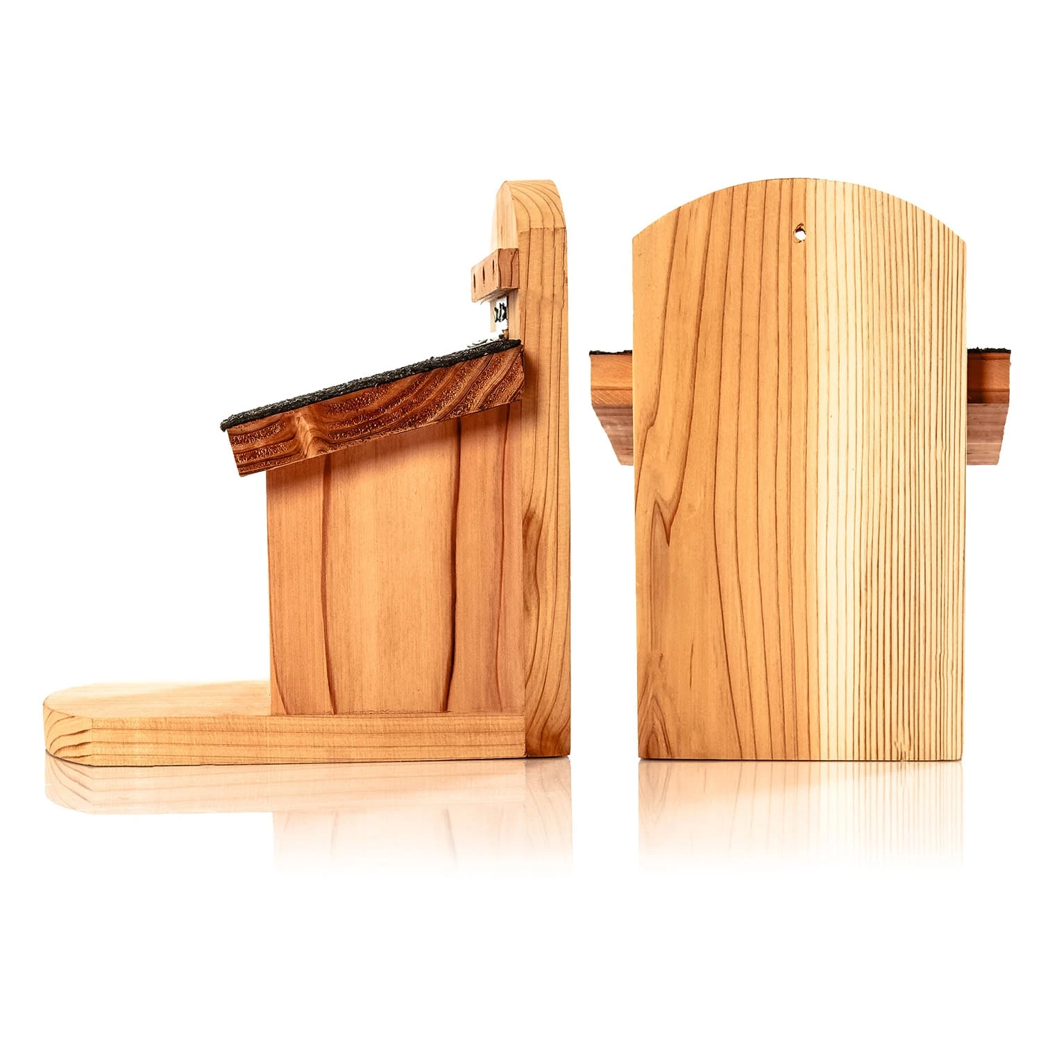 - Material: unbehandeltes Rotzedernholz / Edelstahl / Bitumenpappe