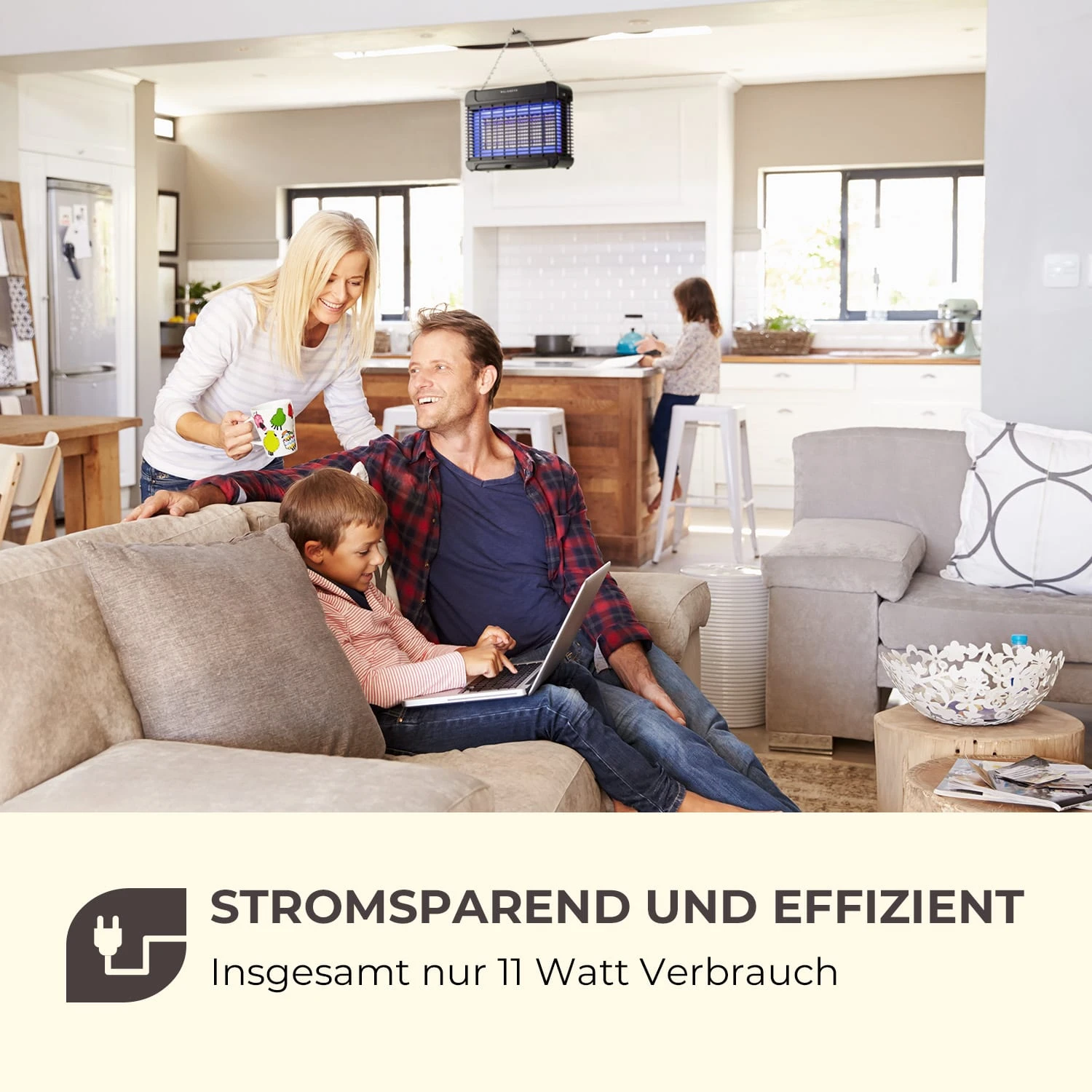 Die Mosquito Ex 5500 LED Insektenfalle hilft Stechmücken, Fliegen und andere lästige Plagegeister in Wohnungen, Küchen oder Ställen bei stromsparenden 11 Watt Verbrauch zu beseitigen und schafft ganz ohne Chemikalien Erleichterung. Dabei werden die Insekten von hochwertigen UV-A LEDs mit einem Spektrum von 365 nm angelockt und durch 4000V schnell und schmerzlos getötet. Das Attraction360 Concept mit seinem offenen Design garantiert dabei den Zugang von allen Seiten. Eine praktische Kettenaufhängung ermöglicht es, das Gerät außerhalb der Reichweite von Kindern oder Tieren an der Decke aufzuhängen.