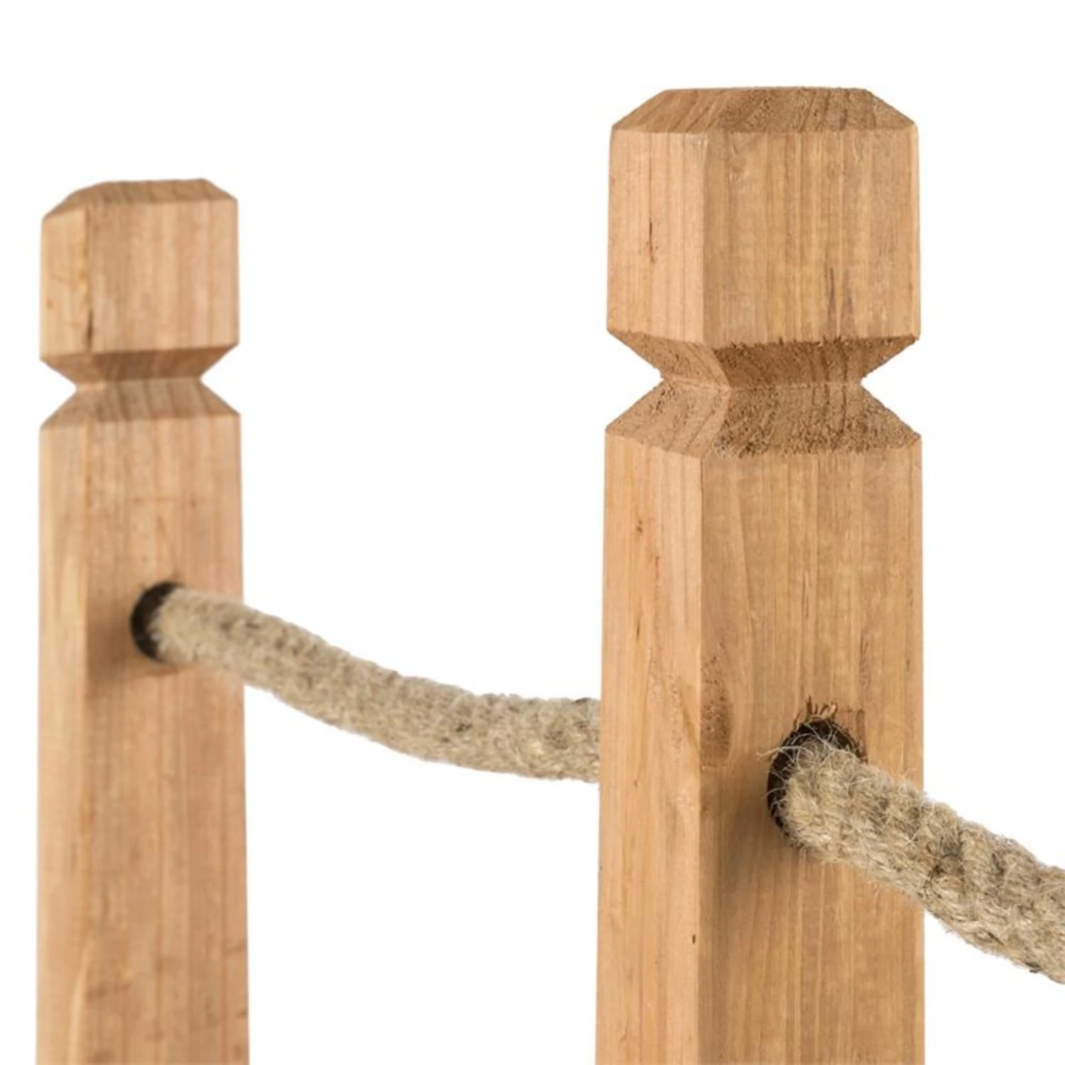 Eine Brücke verbindet und die Blumfeldt Rialto Zierbrücke schlägt verbindende Wege in jedem Arrangement im Garten: Ob über kleine Bachläufe, über Blumenbeete oder als kreatives Element im Steingarten, mit einer Gartenbrücke setzen Sie geschickt Akzente. Komplett aus massiven Nadelbaum-Echtholz gefertigt, ist die Rialto Gartenbrücke nicht nur ein Zierelement, sondern tatsächlich ein stabiles, voll begehbares Element im Garten. Mit 122 cm Länge überspannt sie problemlos Rabatten oder kleine Wasserläufe zwischen Zierteichen. Auf jeder Seite spannen vier 50 cm hohe Pfosten ein rustikales Geländer in Form eines 1,5 cm dicken Taus auf. So haben kleine Brückengänger einen sicheren Handlauf und große erfreuen sich am Anblick des stabilen Zierelements.