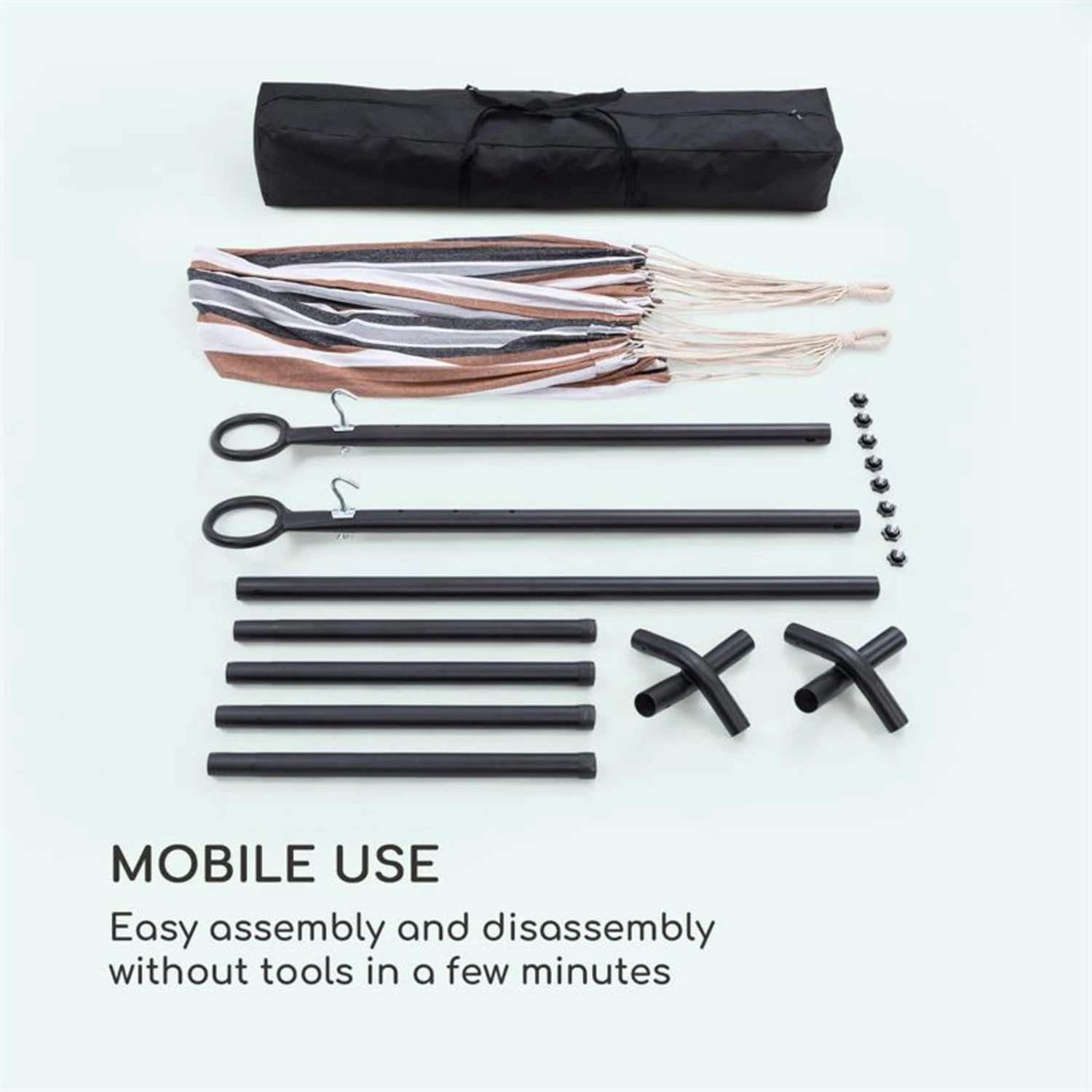 Mit Hilfe einer praktischen Tragetasche wird die Blumfeldt Sri Lanka Swing Hängematte zur mobilen und flexibel einsetzbaren Insel der Erholung.