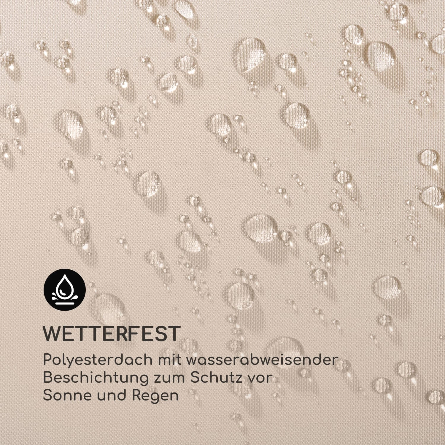 - Material Sonnendach & Seitenflügel: 160 g/m² Polyester mit wasserabweisender Beschichtung